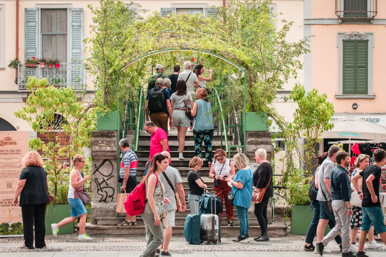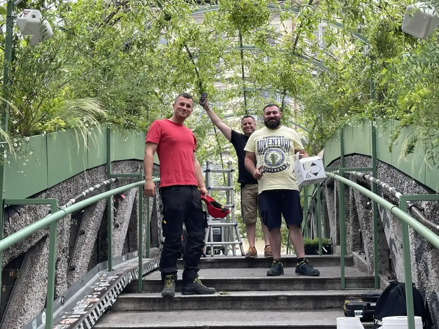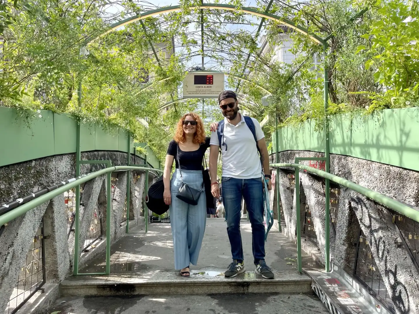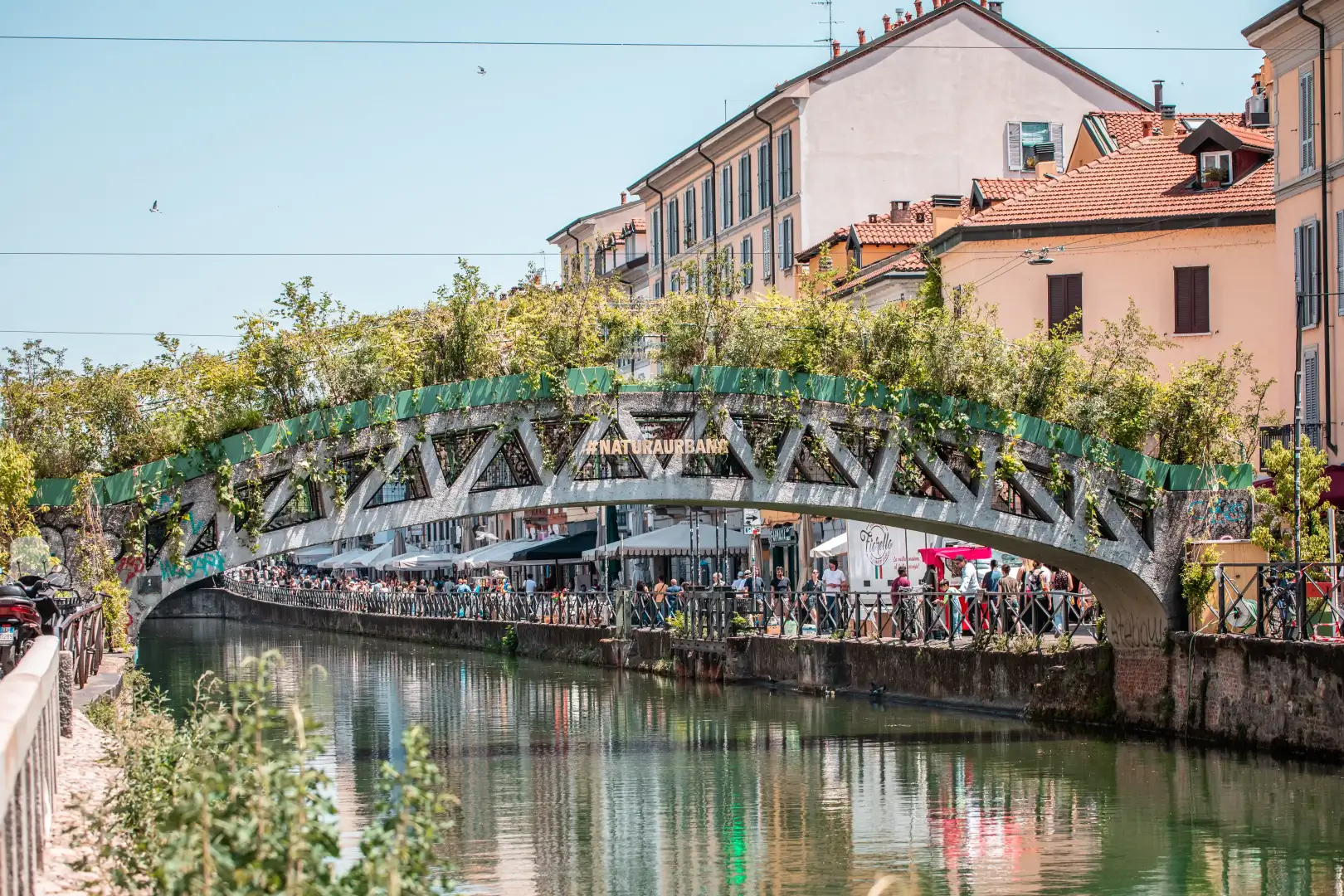 The initiative, along Milan's Naviglio Grande, took place on the Alda Merini Bridge, transformed into an experiential green tunnel, vitalized by the direct participation of citizens, alongside two murals executed with an innovative paint capable of absorbing CO2.