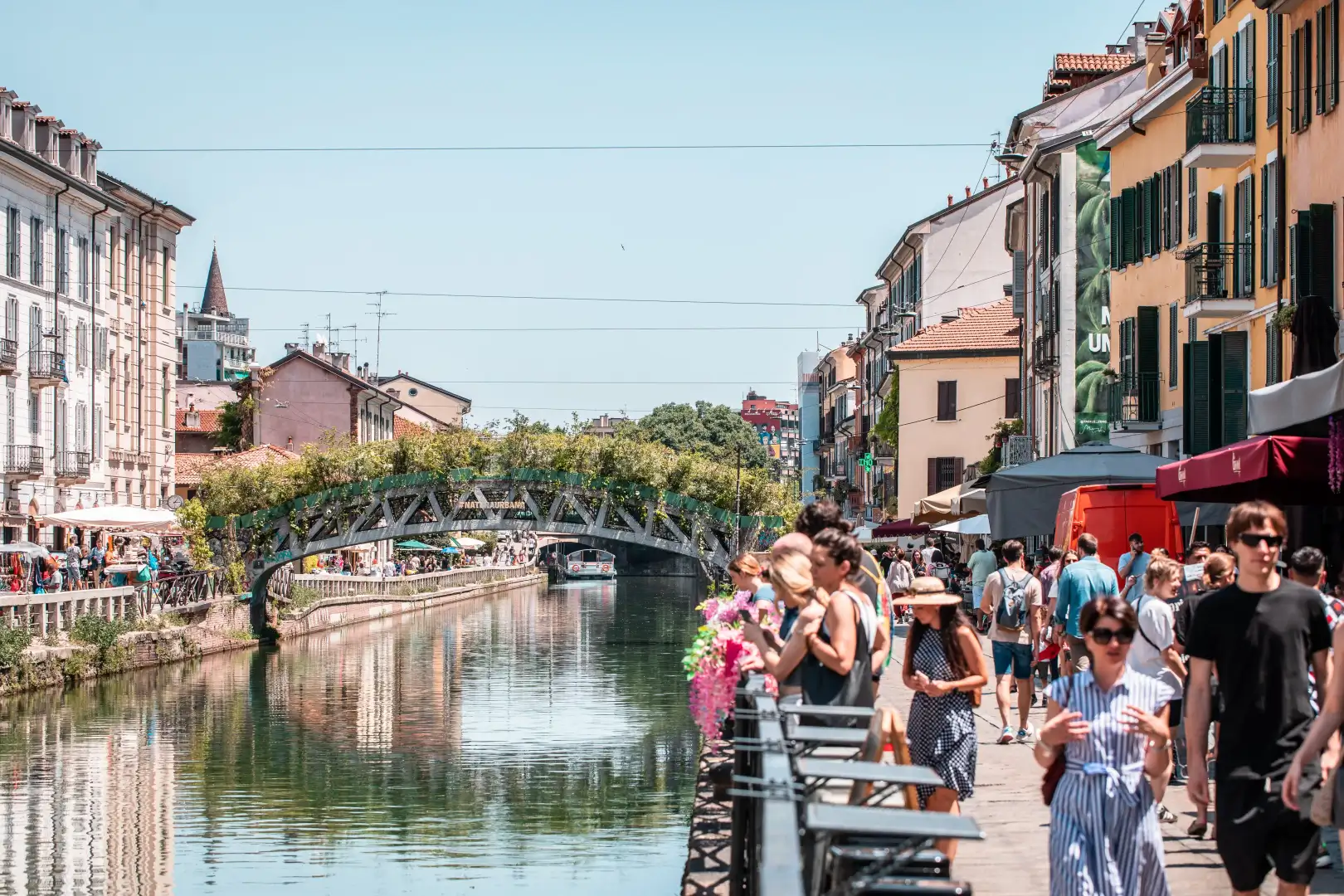 Two visual openings, specially created in the center of the bridge, allowed some of the most striking views of the Milanese canals to be observed in a new perspective, in which the foliage of the plants served as a frame.