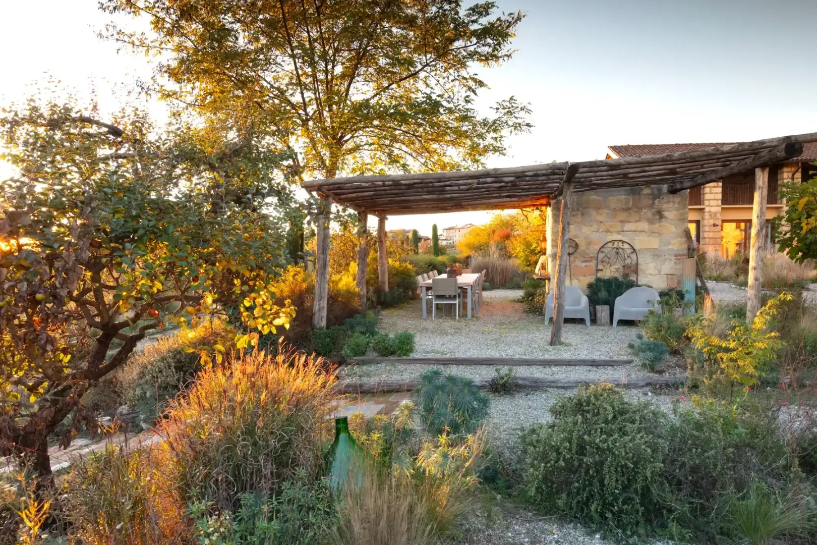 - Focus: Strategie per integrare il verde nel paesaggio; recupero di materiali; risparmio idrico; scelte botaniche; manutenzione sostenibile.