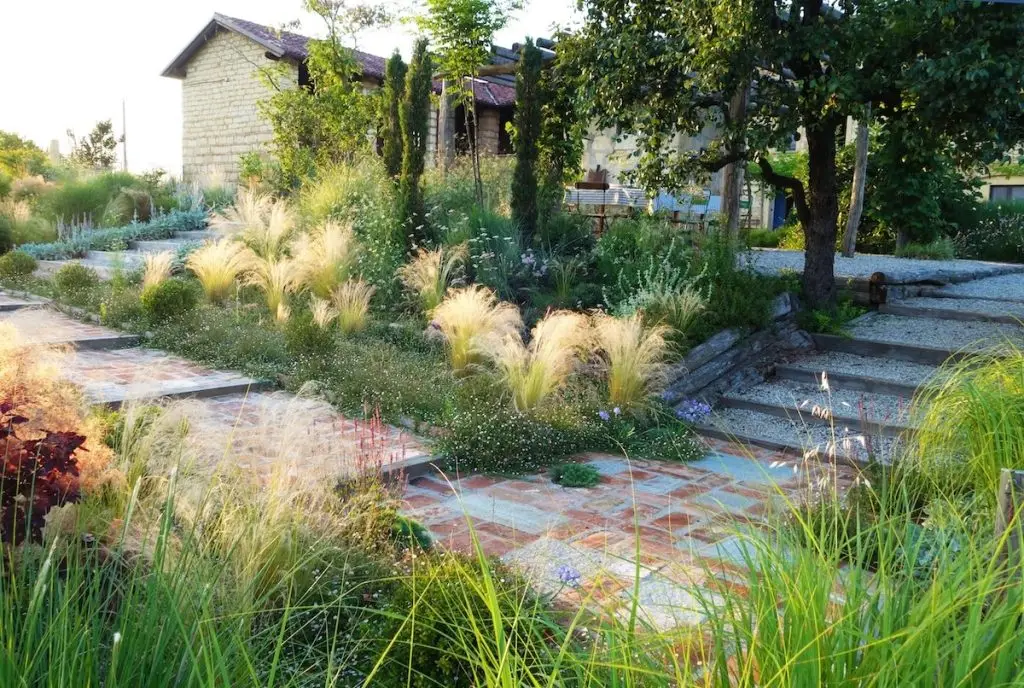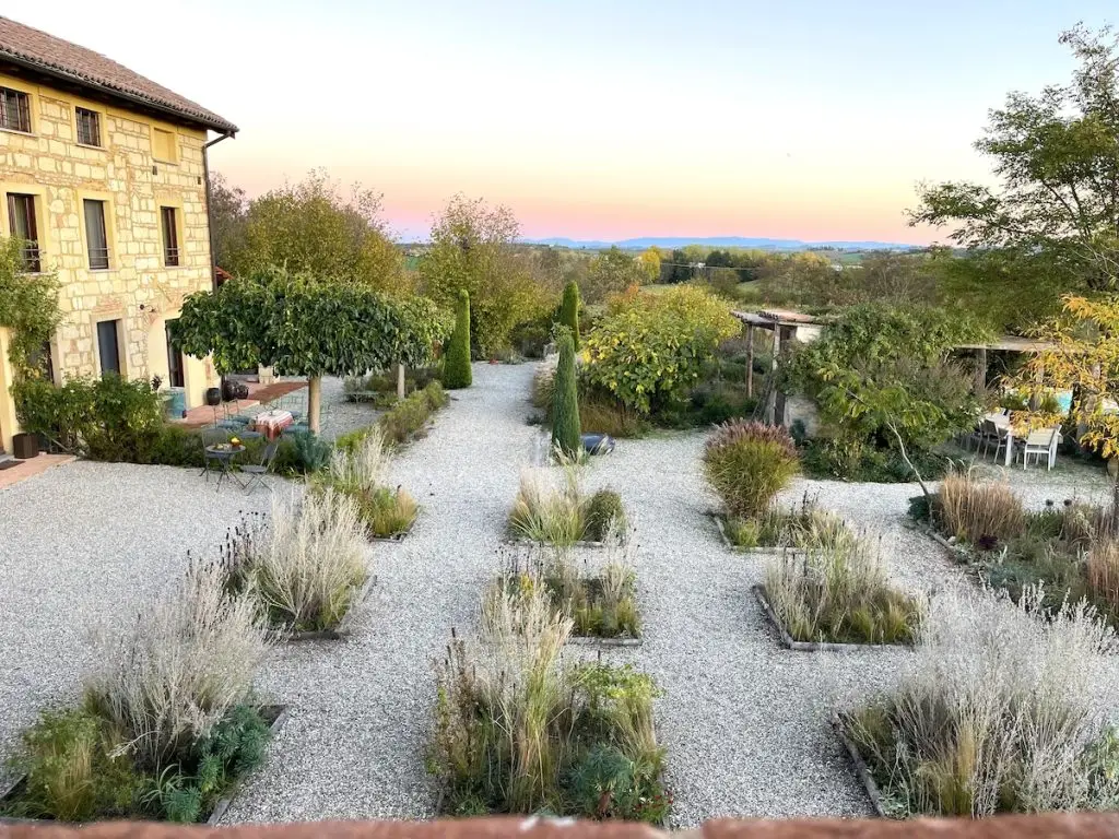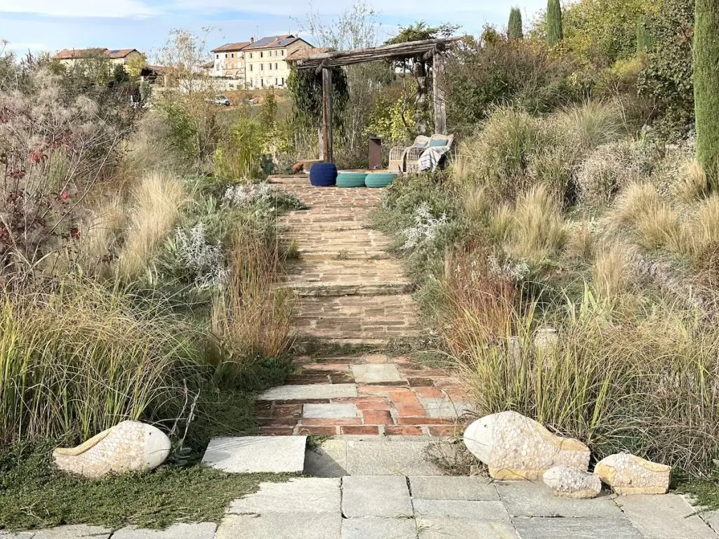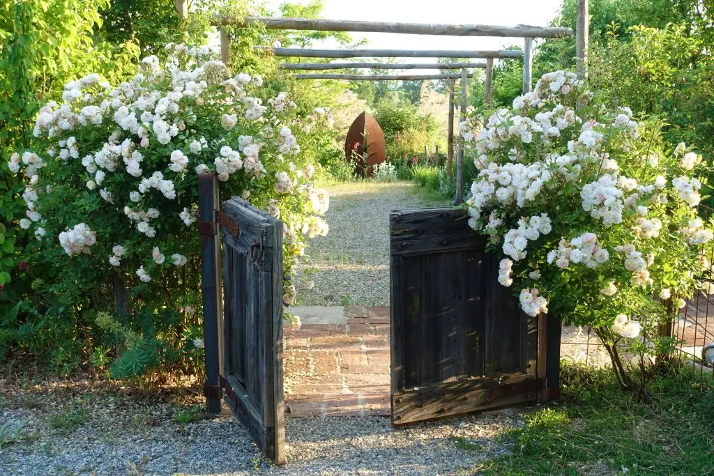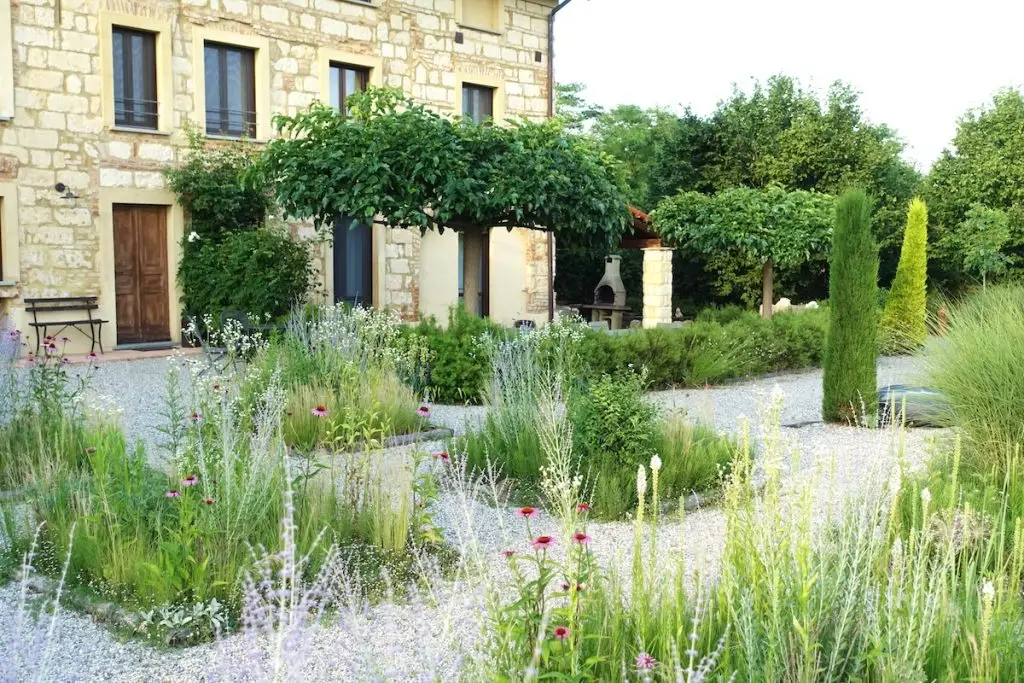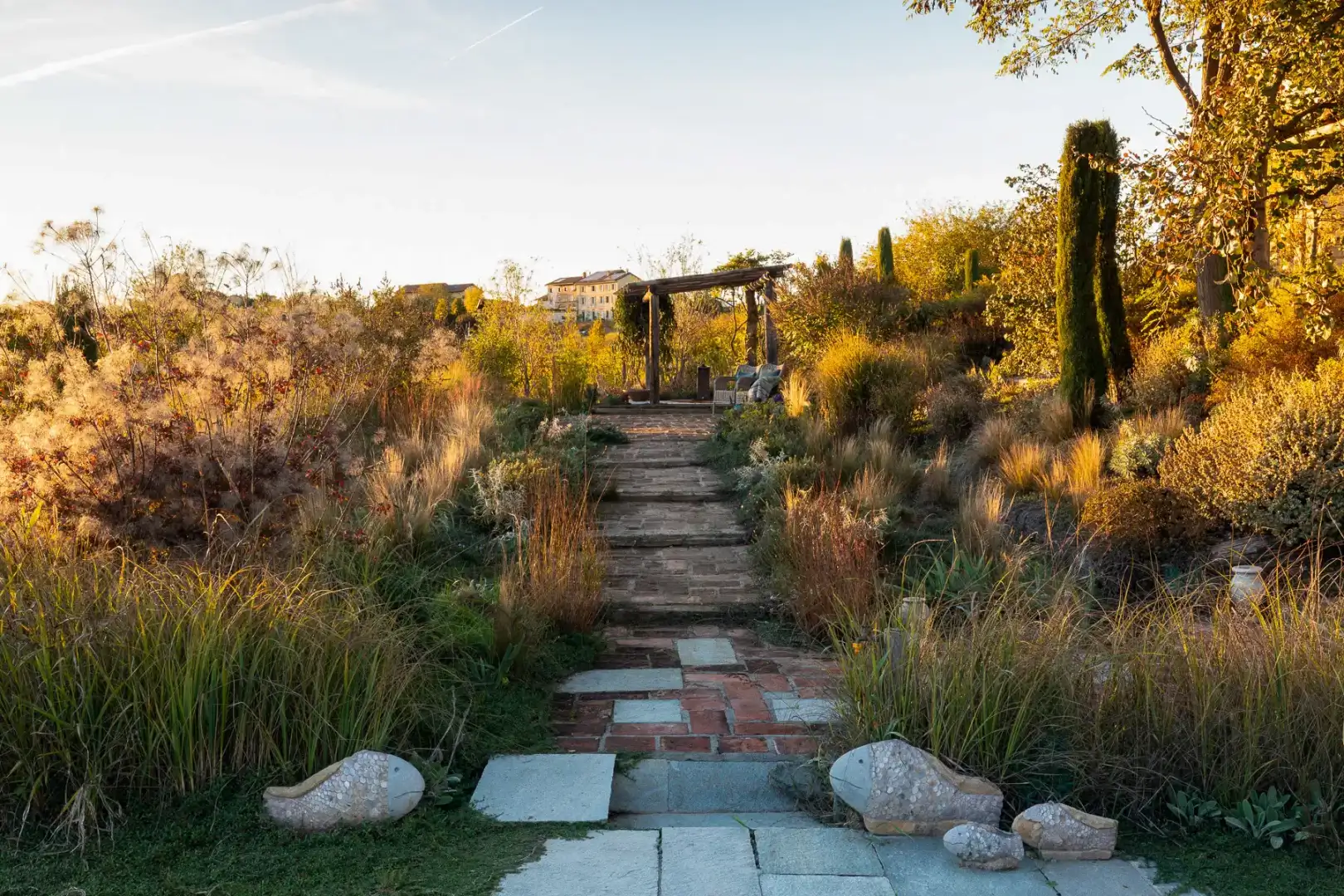 Nel cuore del Monferrato, tra antichi borghi e vigneti, in un paesaggio dai profili morbidi ma dal terreno duro ed argilloso, è nato questo giardino, oasi di pace intima e segreta. Senza impianto di irrigazione e con una manutenzione minimale, esso affronta la sfida con piante intrepide e tenaci, che creano un’atmosfera leggera e carezzevole, in continuità con il paesaggio circostante.