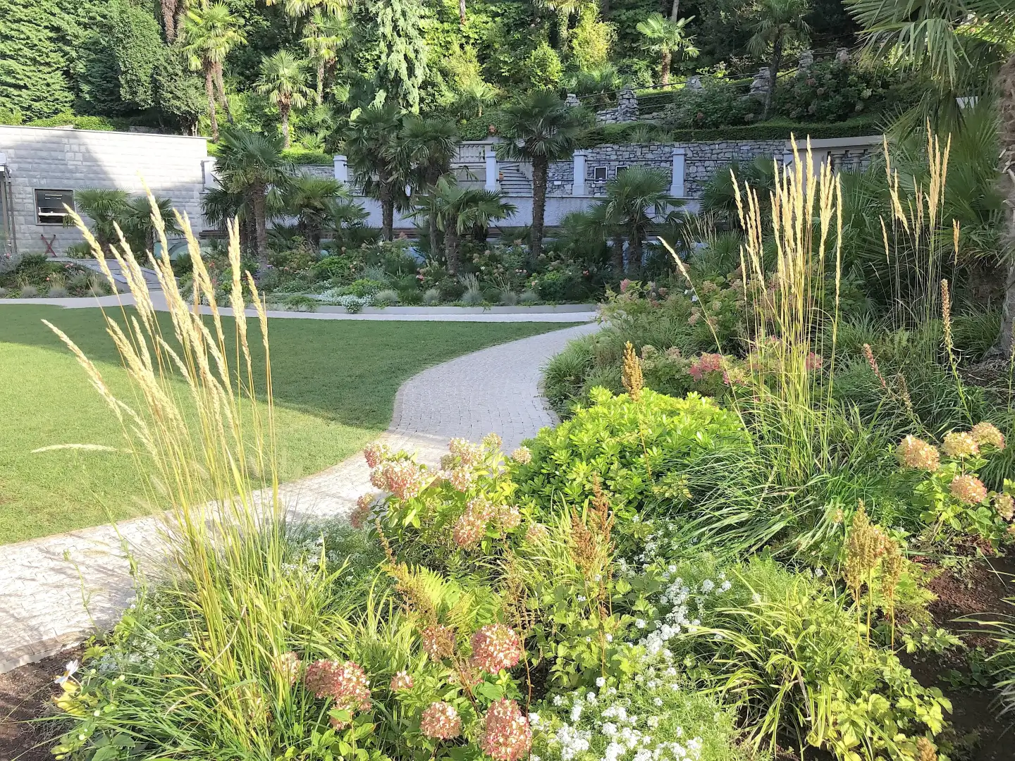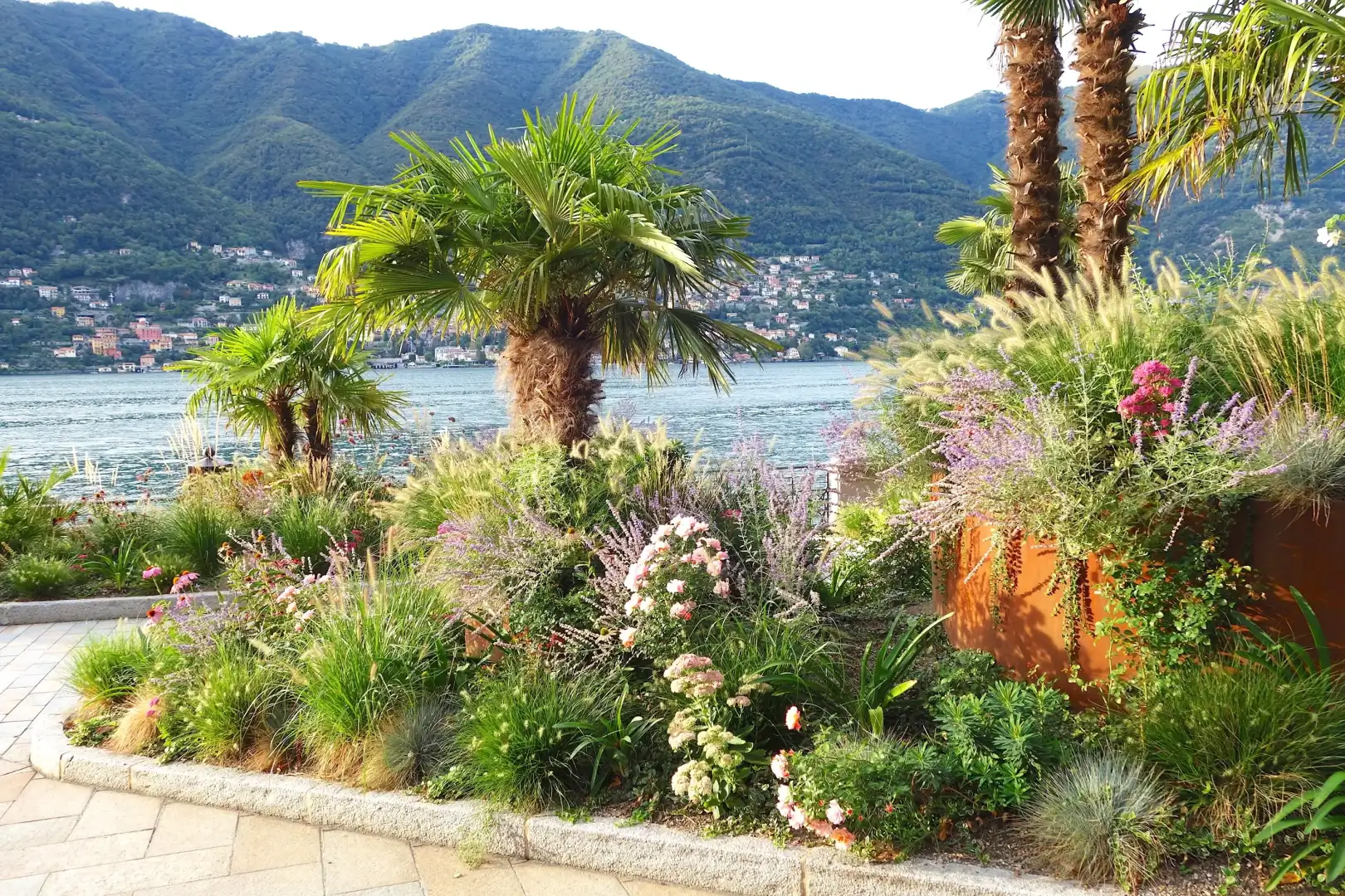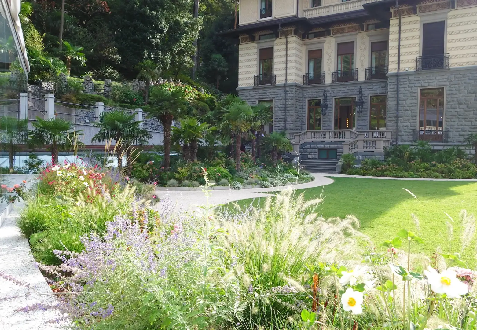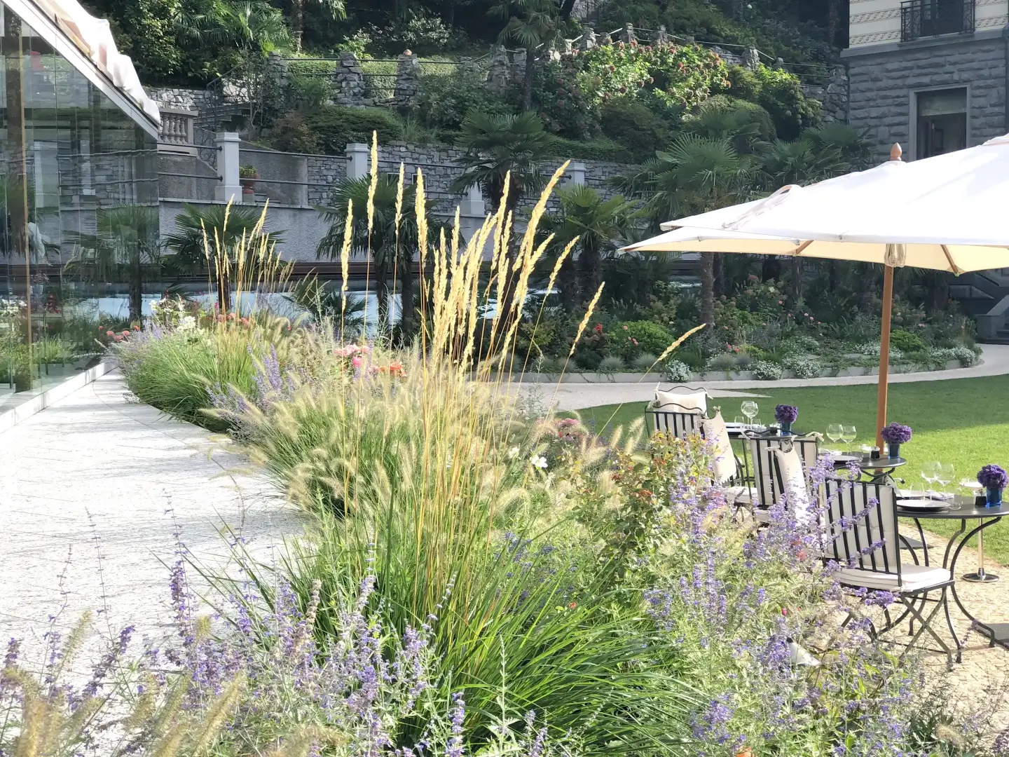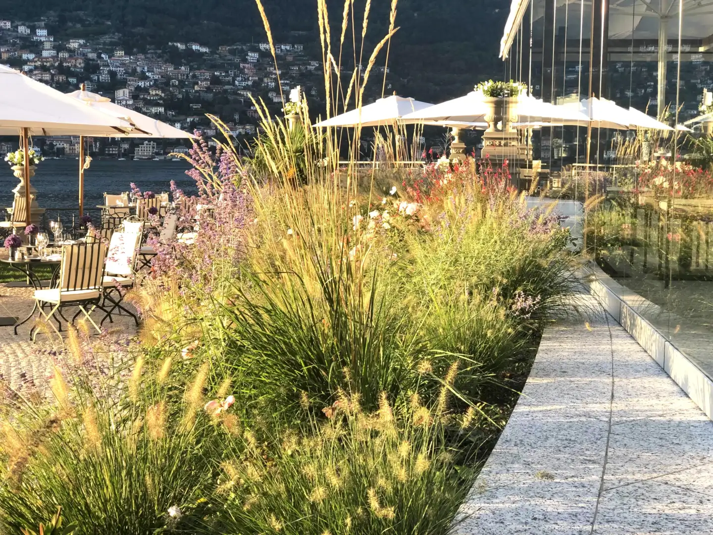 Un prezioso contributo al progetto di riqualificazione del giardino annesso all’esclusivo Mandarin Oriental Resort sul lago di Como, assegnatoallo studio Patrizia Pozzi Landscape Architecture, che ha scelto di avvalersi della nostra consulenza per la scelte botaniche e per ilposizionamento delle piante nelle aree di intervento lungolago, per dar vita ad un quadro unico, dalle caratteristiche inconfondibili.La richiesta di realizzare una scenografia vegetale adeguata ad un luogo affacciato su uno dei punti più belli dellapreziosa cornice del lago lariano, si è tradotta in proposte botaniche e soluzioni compositive capaci di esaltare ilsito, ed interpretarne le luci ed i colori mutevoli.Le scelte vegetali si sono incentrate su un’alternanza di fioriture dai toni raffinati e ricercati, e di spighe dalleseducenti trasparenze: dalle corolle color rosa antico delle tante erbacee perenni ai panicoli bianco perla delleortensie, dalle infiorescenze leggere e dorate delle graminacee, fluttuanti al ritmo delle brezze, stagliate nel cielocangiante.Il risultato è un quadro in continuo movimento, perennemente diverso con il variare delle stagioni, sofisticato emorbido, avvolgente ed accogliente, sensuale ed accattivante.Il ritmo è dettato dal tronco svettante delle tante palme che si rincorrono in tutto il giardino, che generanoun’atmosfera di giungla, esuberante ma addomesticata, in un dialogo ininterrotto con l’architettura circostante.Un luogo magico in cui perdersi e lasciarsi viziare.