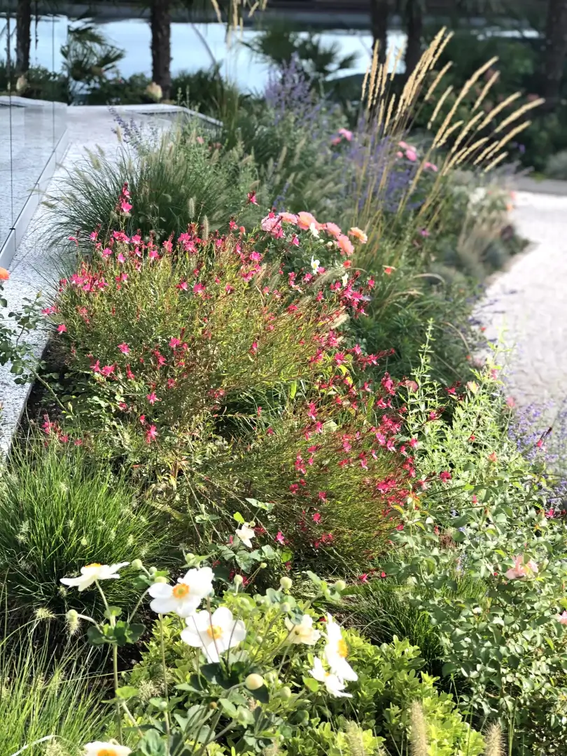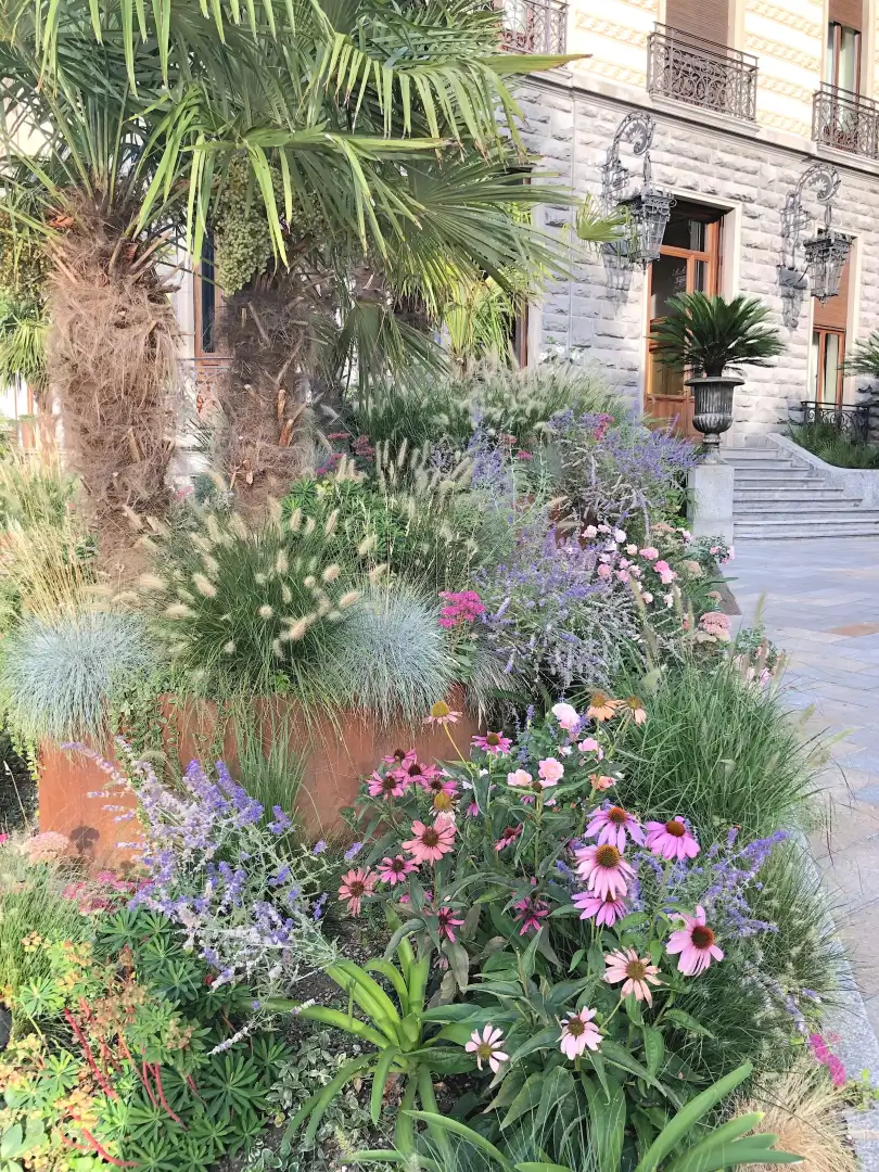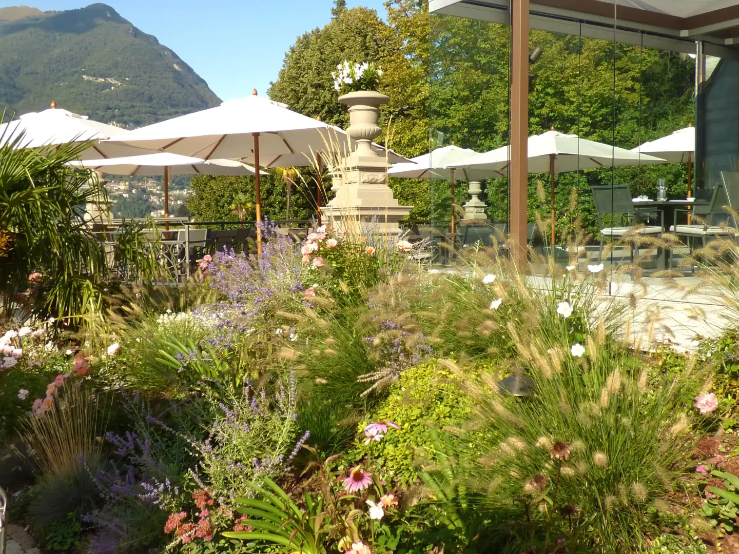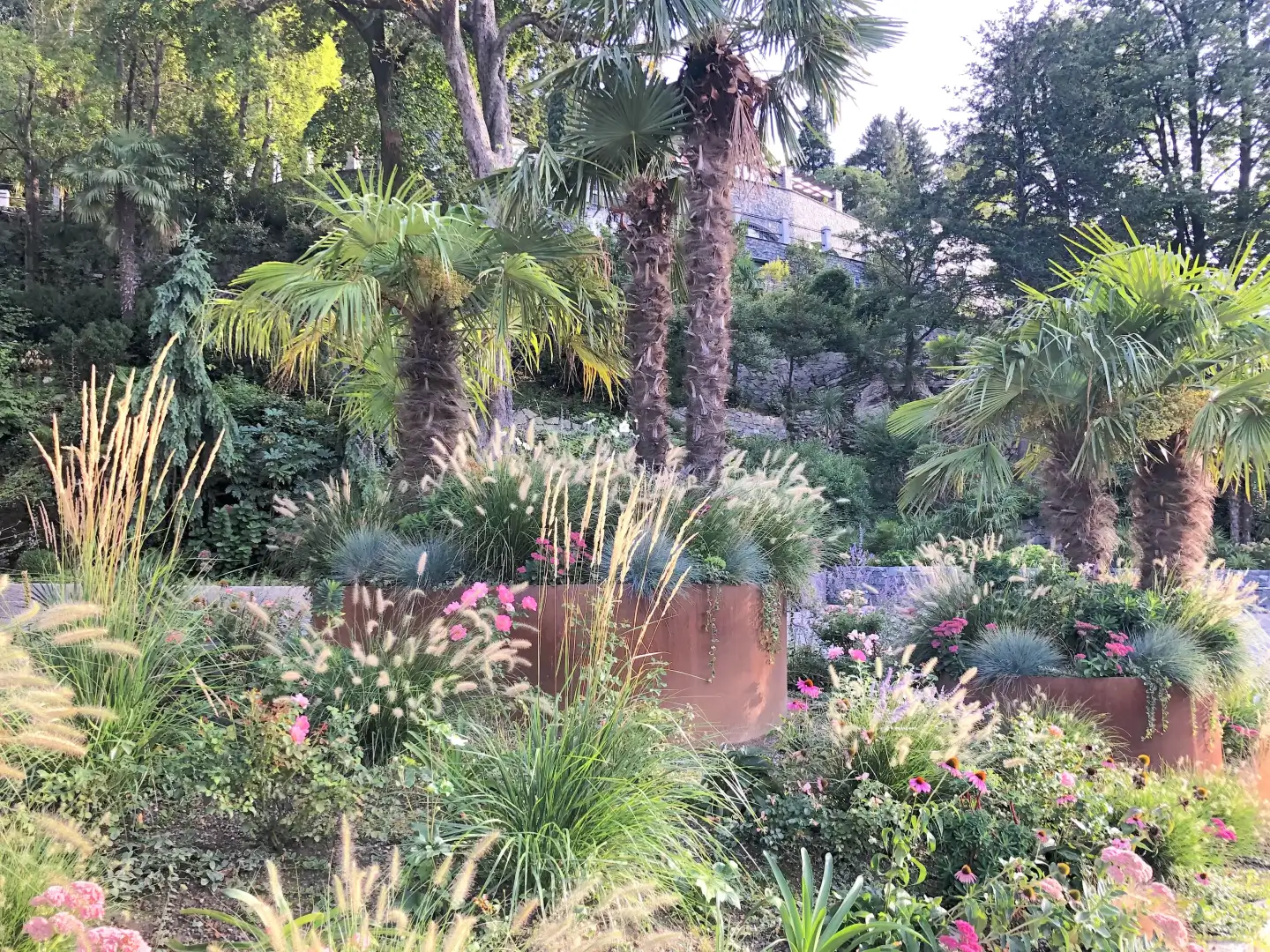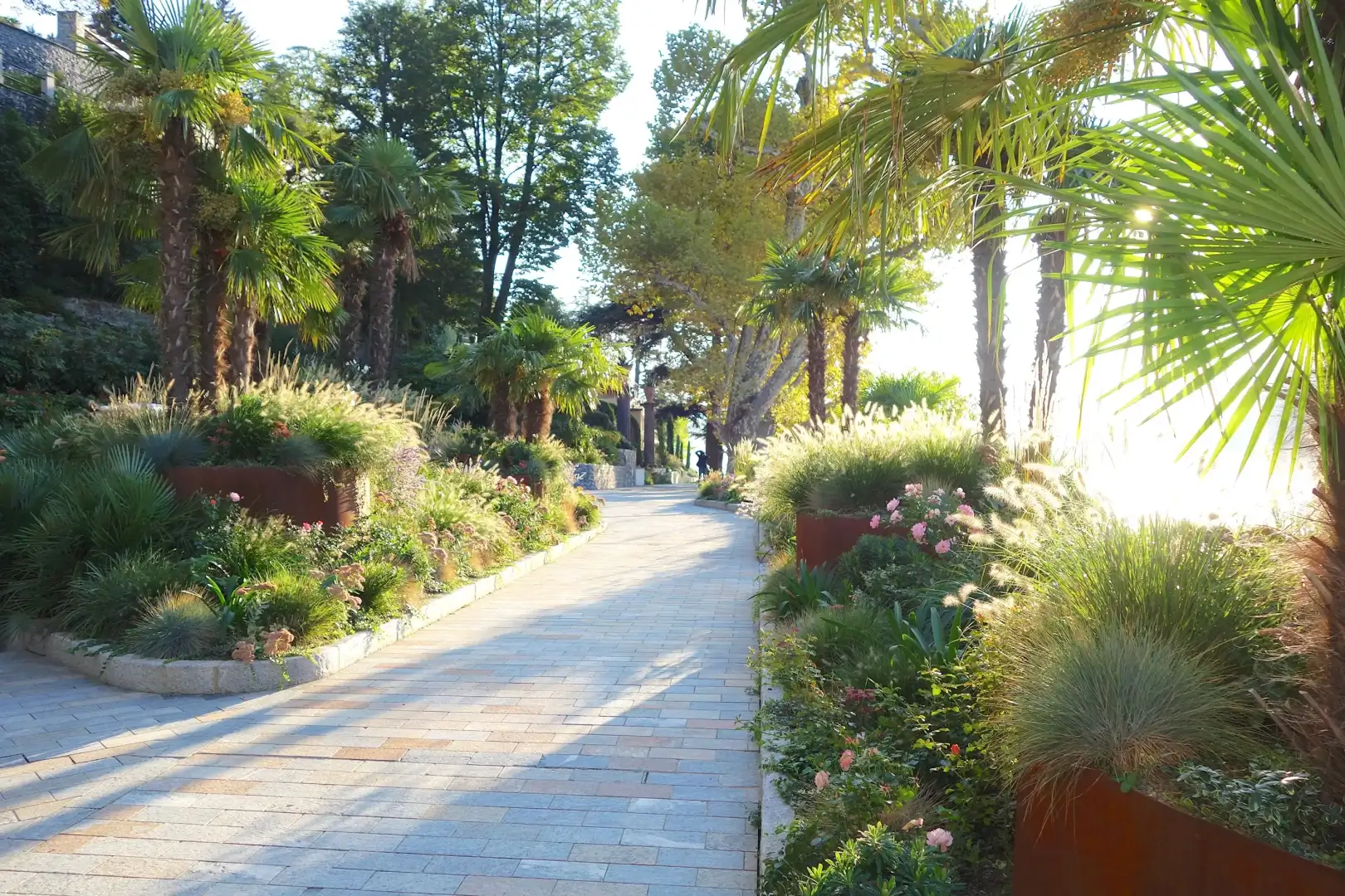 Un prezioso contributo al progetto di riqualificazione del giardino annesso all’esclusivo Mandarin Oriental Resort sul lago di Como, assegnatoallo studio Patrizia Pozzi Landscape Architecture, che ha scelto di avvalersi della nostra consulenza per la scelte botaniche e per ilposizionamento delle piante nelle aree di intervento lungolago, per dar vita ad un quadro unico, dalle caratteristiche inconfondibili.La richiesta di realizzare una scenografia vegetale adeguata ad un luogo affacciato su uno dei punti più belli dellapreziosa cornice del lago lariano, si è tradotta in proposte botaniche e soluzioni compositive capaci di esaltare ilsito, ed interpretarne le luci ed i colori mutevoli.Le scelte vegetali si sono incentrate su un’alternanza di fioriture dai toni raffinati e ricercati, e di spighe dalleseducenti trasparenze: dalle corolle color rosa antico delle tante erbacee perenni ai panicoli bianco perla delleortensie, dalle infiorescenze leggere e dorate delle graminacee, fluttuanti al ritmo delle brezze, stagliate nel cielocangiante.Il risultato è un quadro in continuo movimento, perennemente diverso con il variare delle stagioni, sofisticato emorbido, avvolgente ed accogliente, sensuale ed accattivante.Il ritmo è dettato dal tronco svettante delle tante palme che si rincorrono in tutto il giardino, che generanoun’atmosfera di giungla, esuberante ma addomesticata, in un dialogo ininterrotto con l’architettura circostante.Un luogo magico in cui perdersi e lasciarsi viziare.