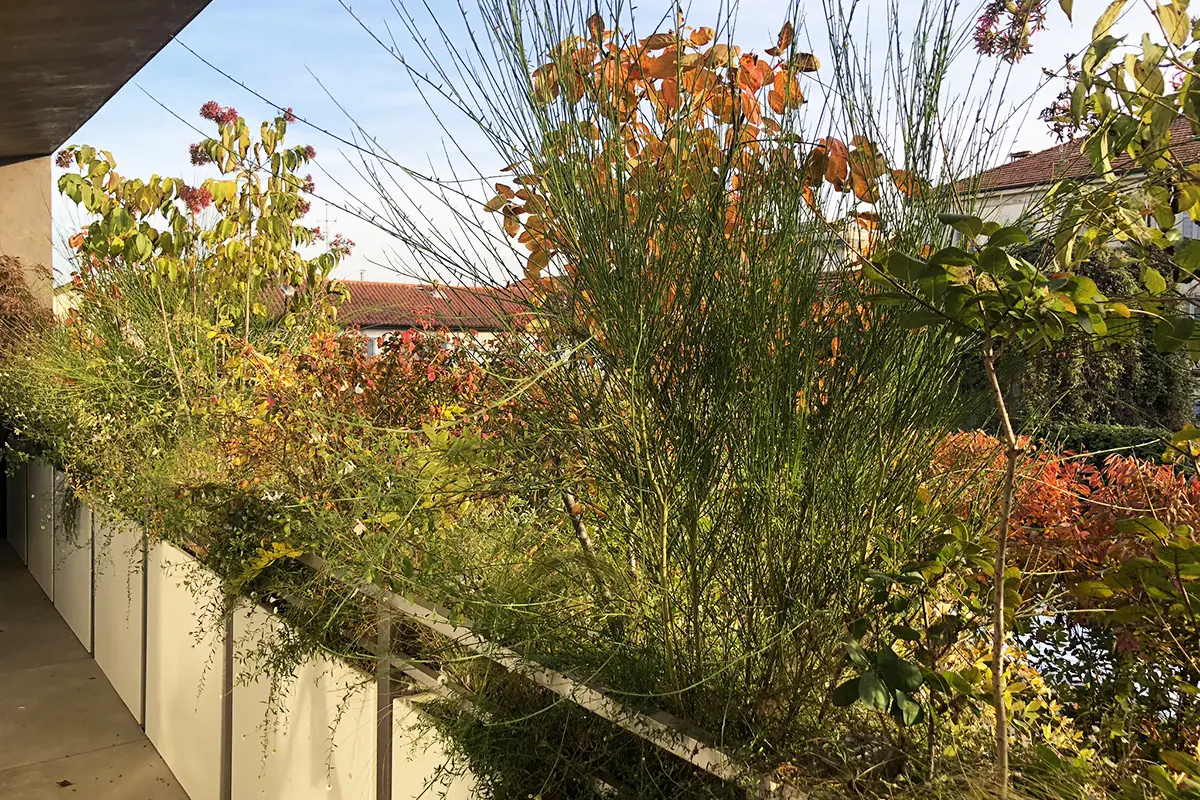 La continua alternanza delle linee architettoniche e la composta morbidezza della vegetazione genera un quadro equilibrato: un Eden urbano in cui si rinnova l’antico sodalizio tra uomo e Natura.