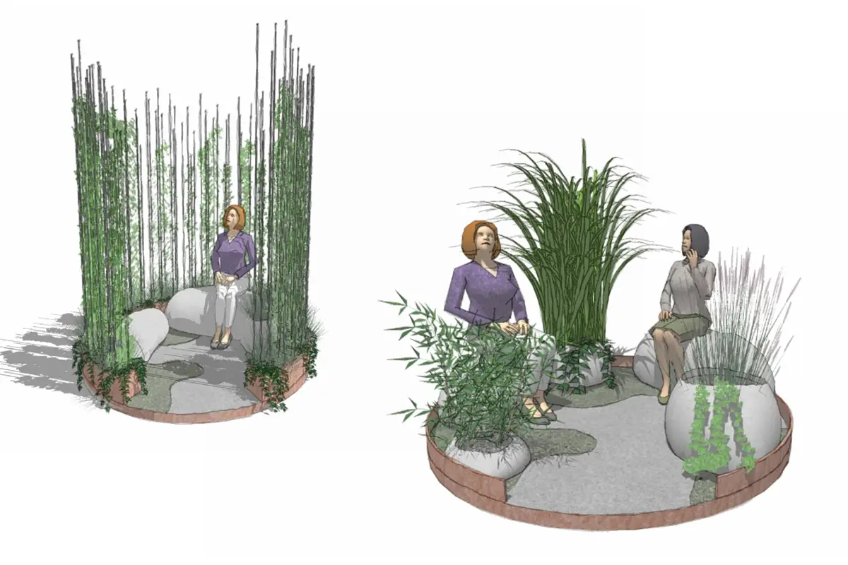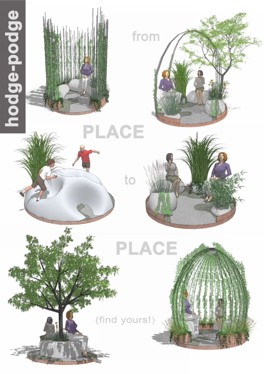 L’intento del progetto è di proporre una serie di unità indipendenti, trasportabili e associabili in combinazioni variabili, ognuna caratterizzata da una propria peculiarità, ma accomunate dalla fatto di proporre linee semplici, spesso prese a prestito dalla natura, da elementi vegetali robusti e scenografici, dalla funzionalità e dalla giocosità. Lo scopo è quello di creare delle micro-isole verdi con diversa identità, dislocabili ovunque nel contesto cittadino in funzione delle esigenze, che rappresentino dei punti di sosta e di rifugio, in cui l’uomo urbano possa riconnettersi con la natura.
