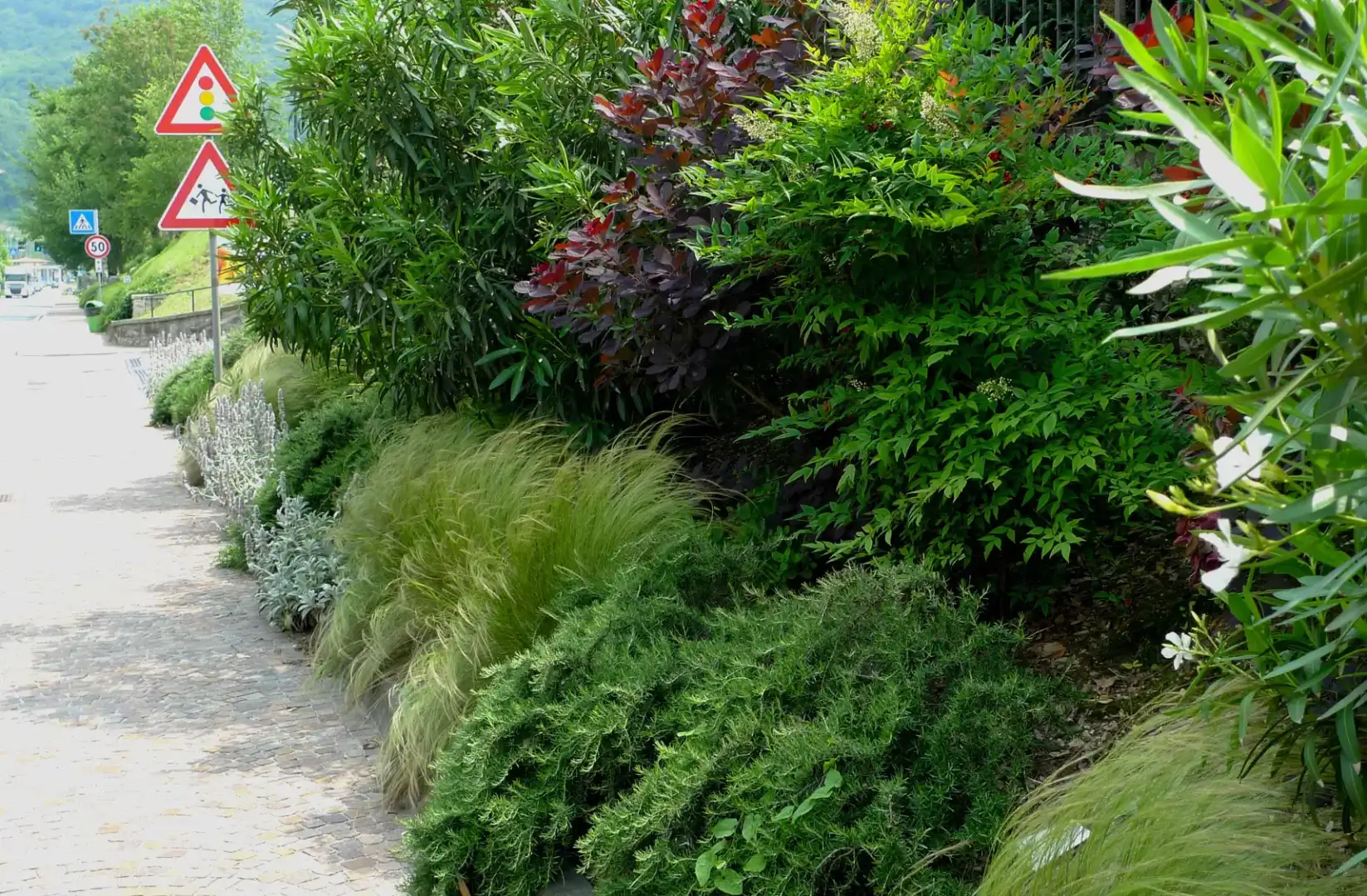 Oltre a migliorare la sicurezza, creando un divisorio naturale, le aiuole offrono quadri fioriti in continuo mutamento nell’arco delle stagioni. Esempio virtuoso per le Amministrazioni comunali, esse hanno consentito l’abbattimento dei costi di manutenzione.