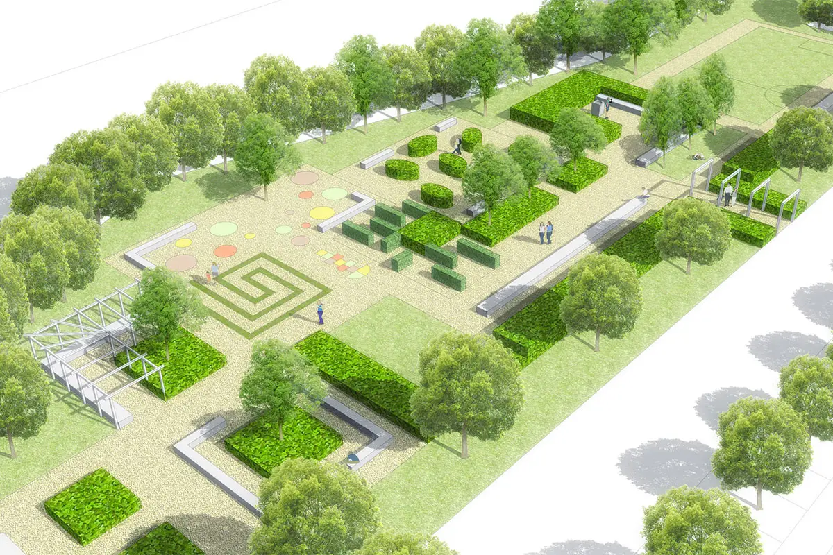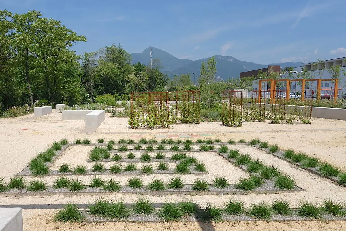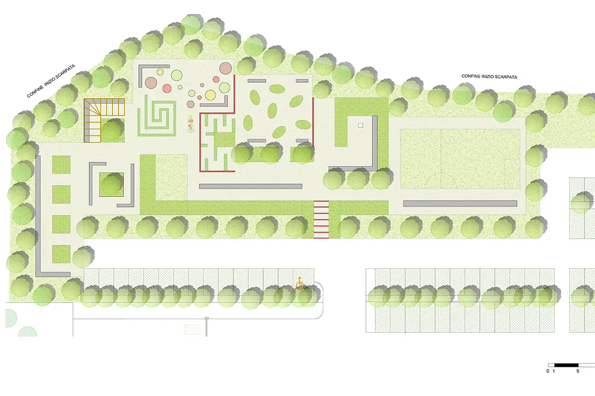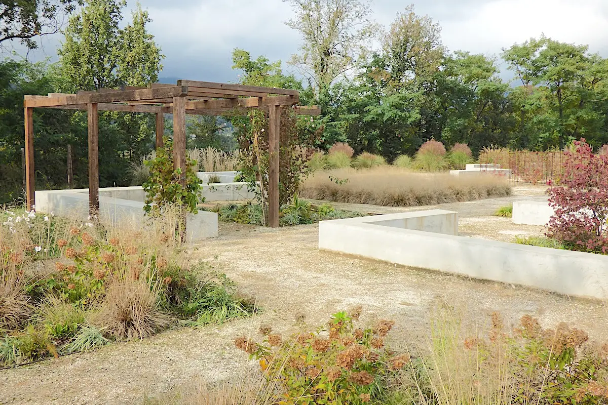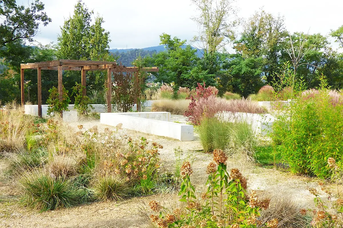 Progettato come una sequenza di stanze interconnesse, il parco è caratterizzato da semplicità strutturale e bassa manutenzione, associate ad una vegetazione varia e ricca di erbacee perenni, che richiamano le fioriture campestri tipiche delle colline circonstanti, invitando ad una sosta.