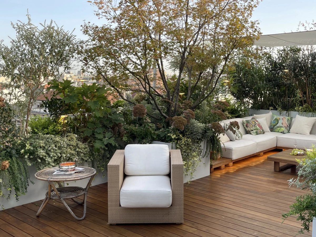 Un grande terrazzo milanese, situato all’ultimo piano di un palazzo contemporaneo, ripensato e rinnovato in occasione di lavori strutturali improcrastinabili, che hanno fornito l’opportunità di reinterpretare gli spazi per adeguarsi alle nuove esigenze della famiglia.