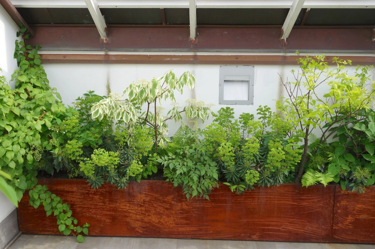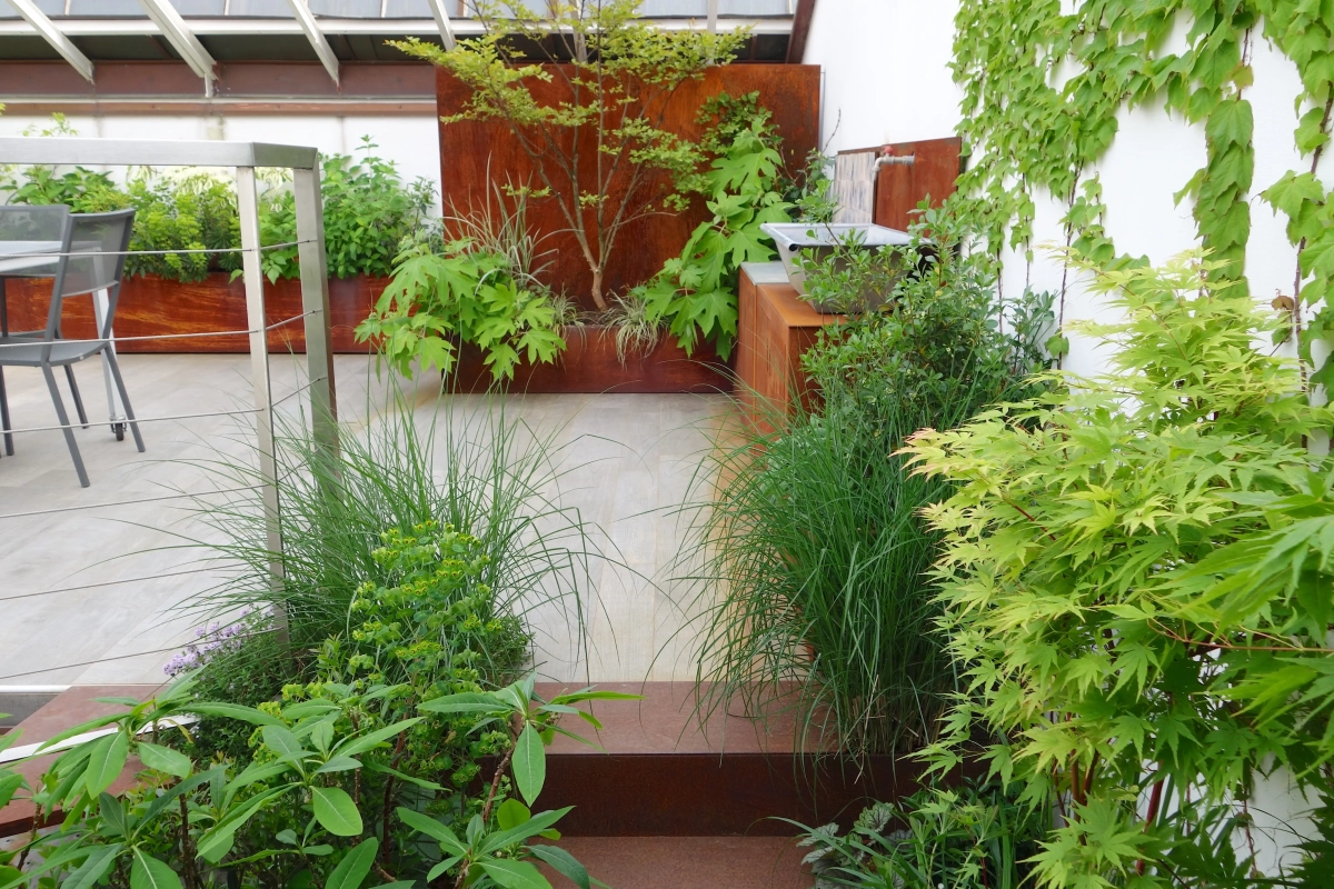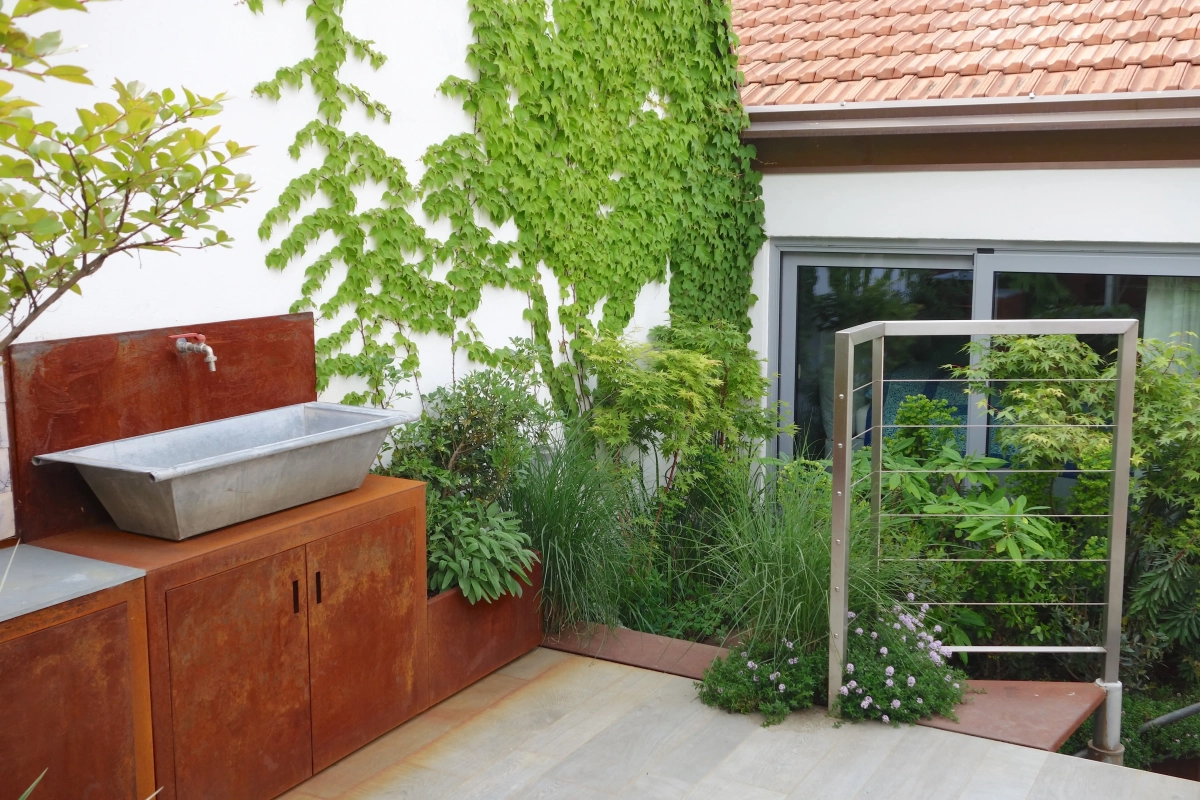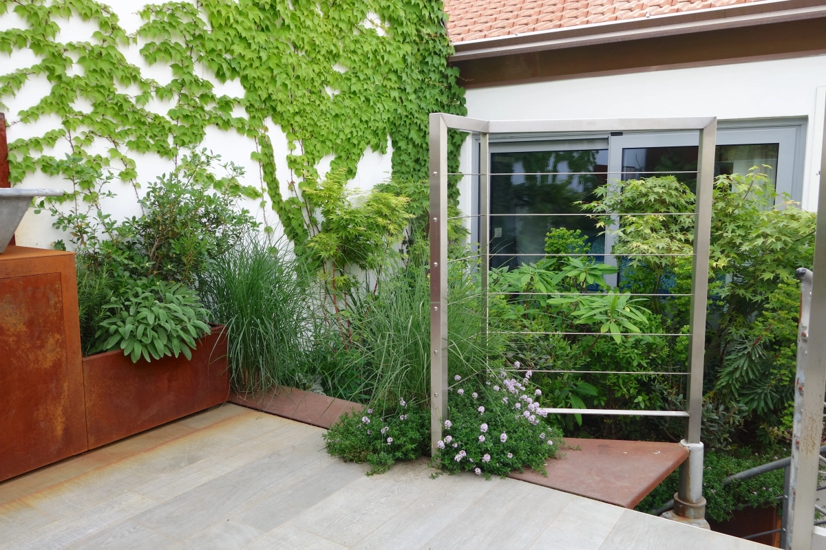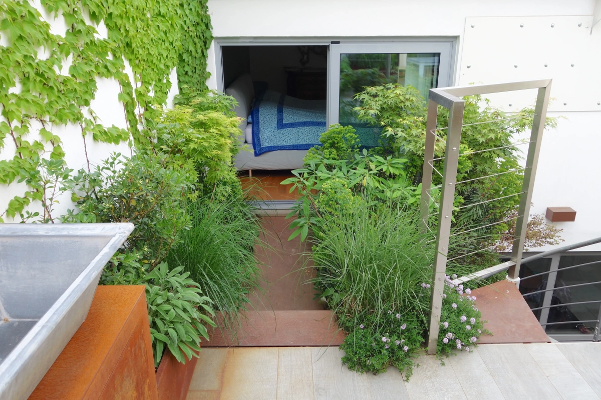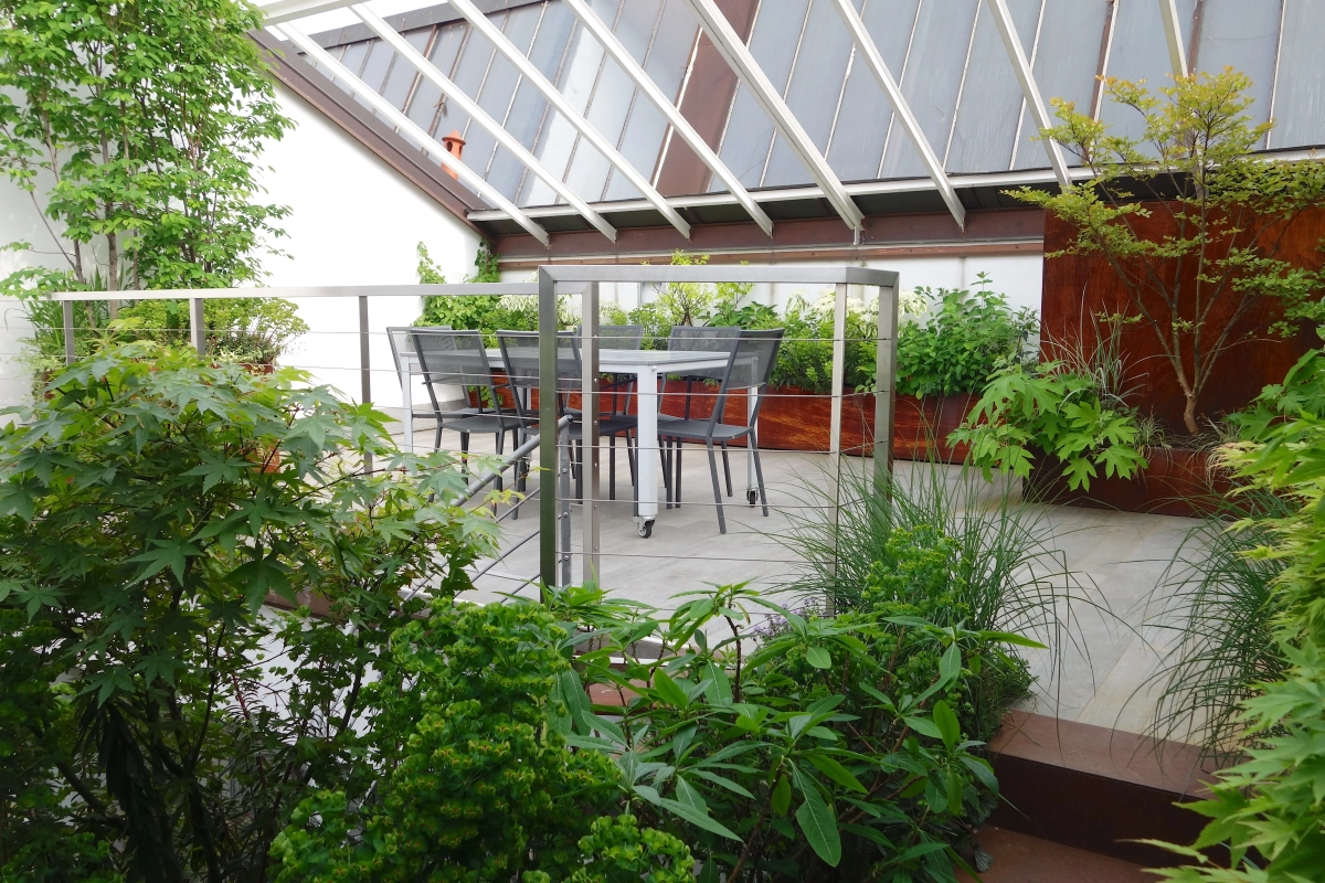 Ricavato sul tetto di un magazzino adiacente ad un loft in una ex fabbrica, questo terrazzo è non solo da godere