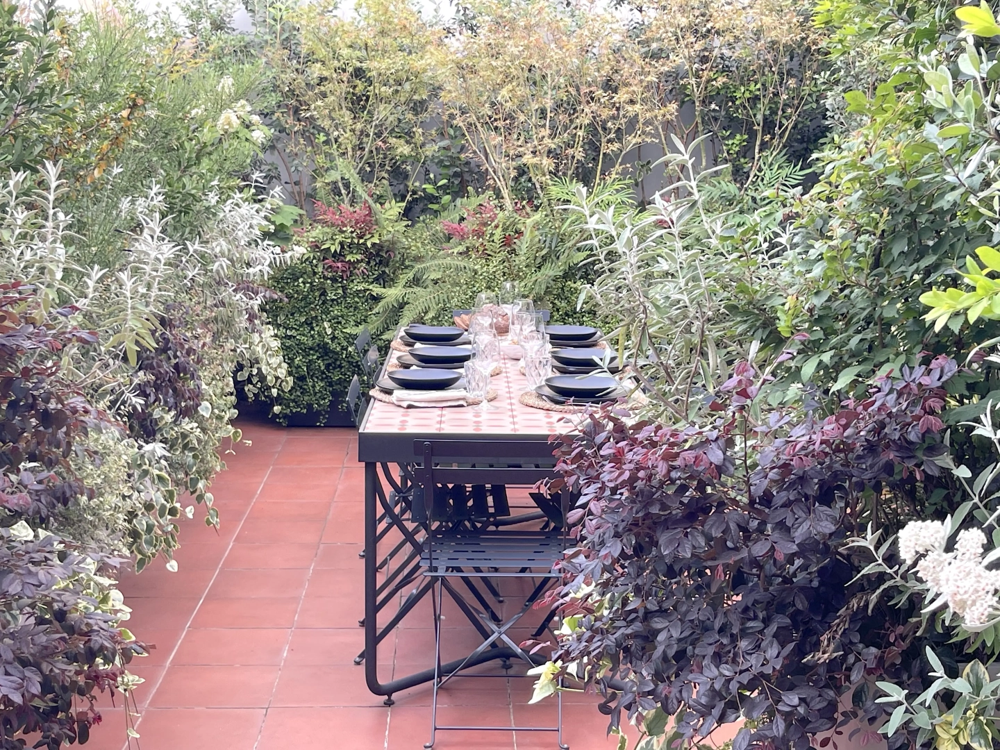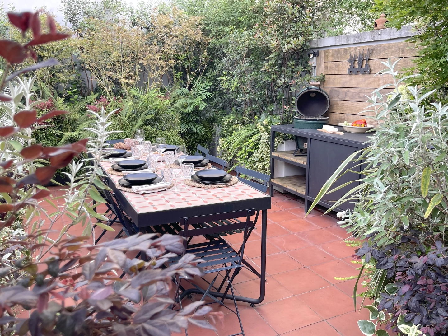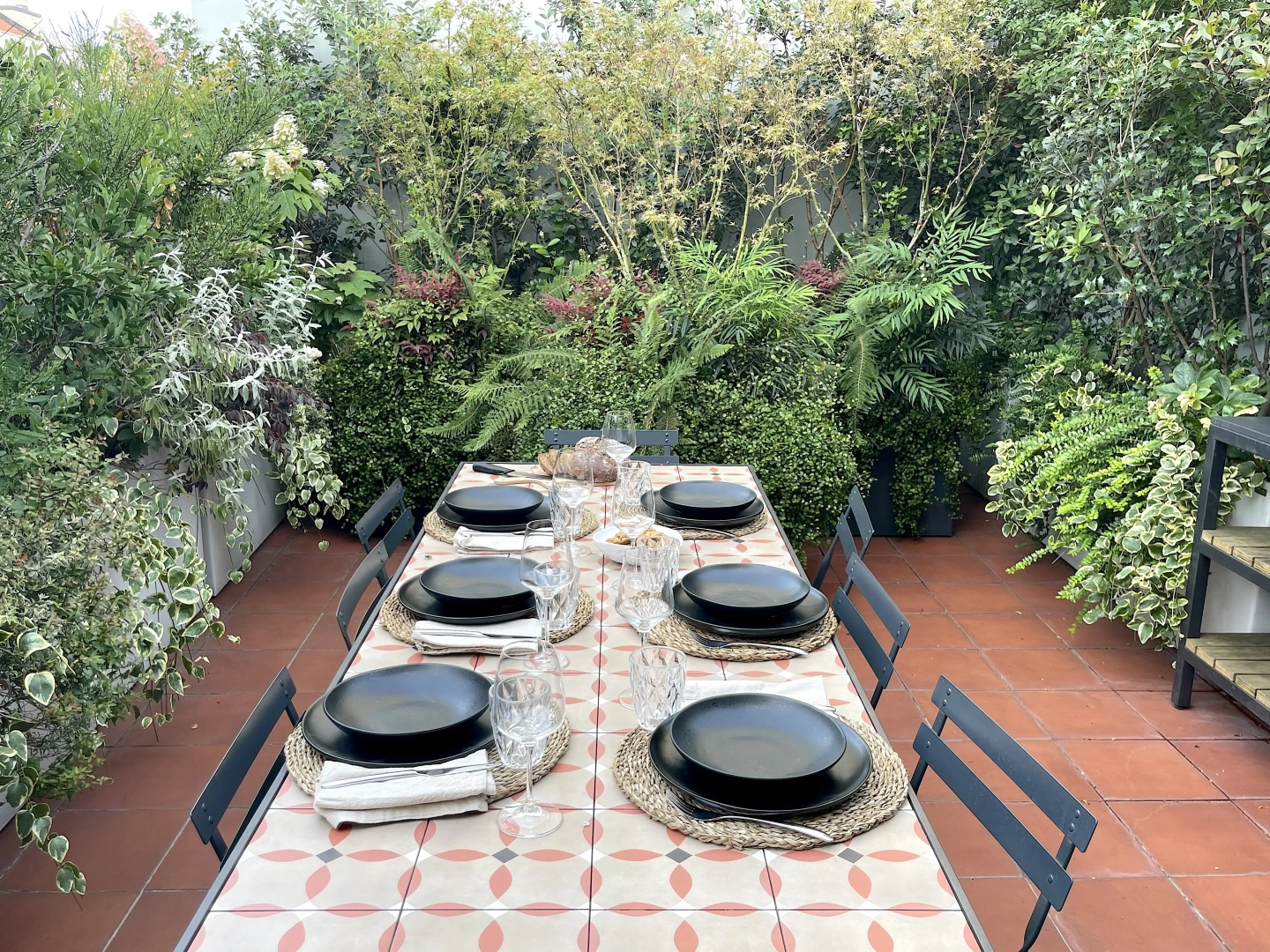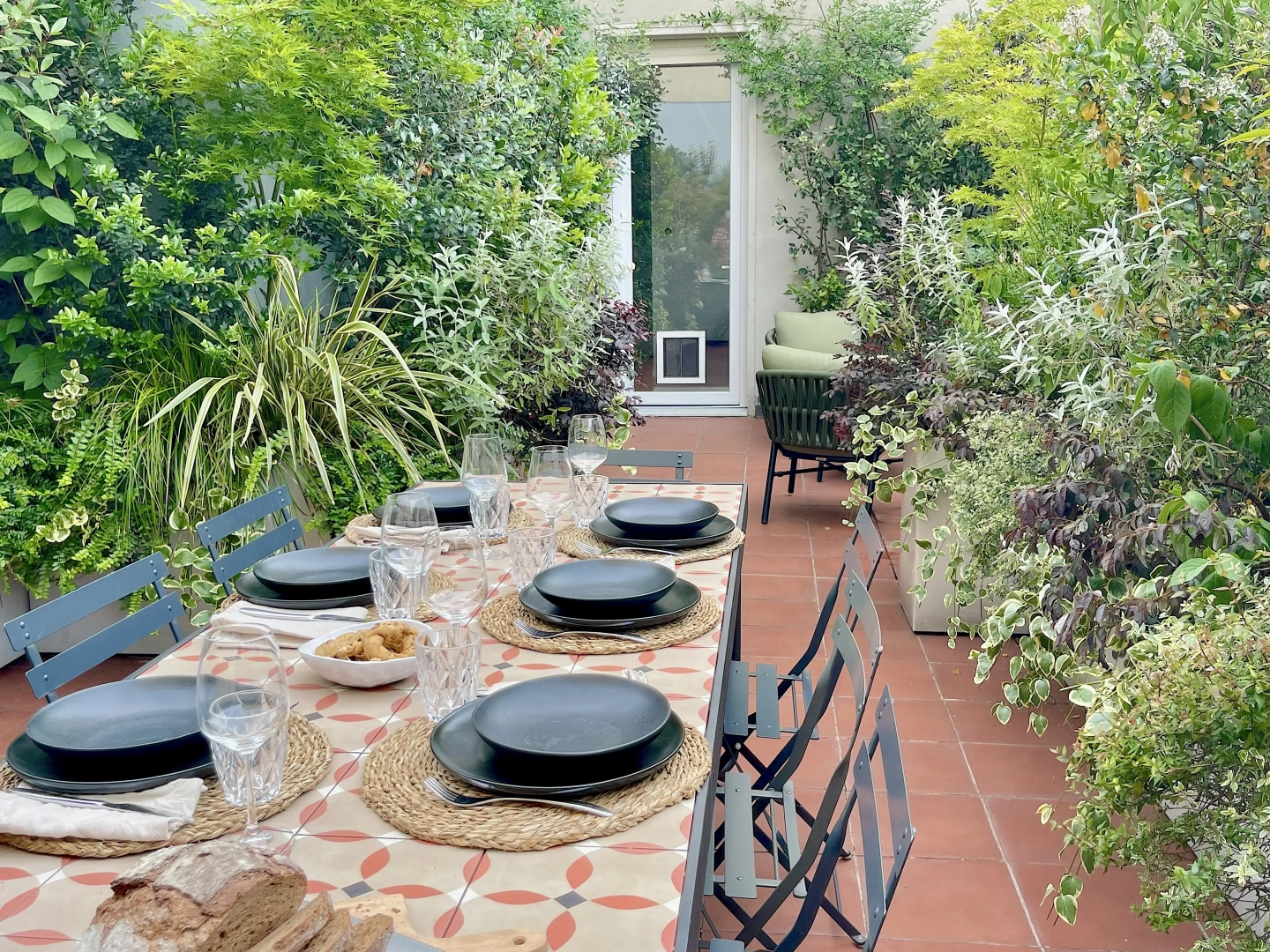 Due terrazzi per una casa, diversamente esposti, ma entrambi votati all’accoglienza e alla convivialità. Quello più ampio accoglie, oltre al tavolo da pranzo ed alla zona salotto, una zona cucina dove preparare succulenti BBQ: pur essendo immersi nel verde, ovunque le piante convivono armoniosamente con gli spazi funzionali, vivacizzandoli senza interferenze. Il terrazzo più piccolo, lungo e stretto, crea un’ambiente informale ma sofisticato per un pranzo romantico o uno spuntino veloce, per leggere il giornale godendo della vista del panorama circostante o per una chiacchierata rilassata sorseggiando un drink. Con la calda complicità del color arancio.